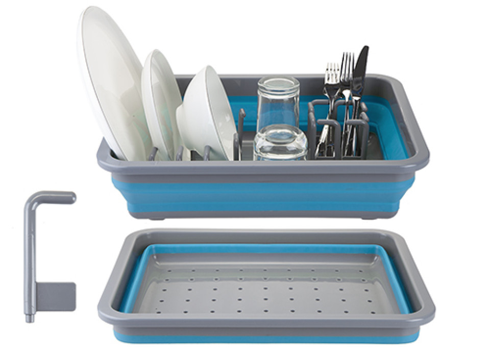This Blue POP! dish rack is ideal for camping, caravans and small kitchens. Made from flexible easy clean material and folds down flat to fit into cupboards or small storage spaces. Complete with multi positional dividers, this product is a great space saver.