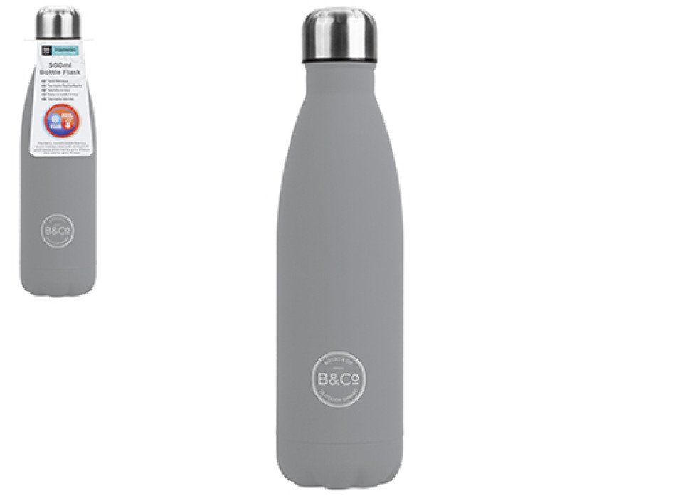 B&Co 500ml Bottle Flask Rubberised Finish -Grey