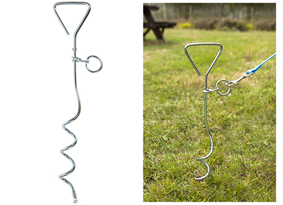 With its corkscrew design, this spiral anchor simply twists into the ground - ready for you to attach your pets lead to the ring provided. With its rotating abilities, your pet will be allowed to roam freely and safely while attached to the anchor. Ideal for when you are camping or on a picnic.